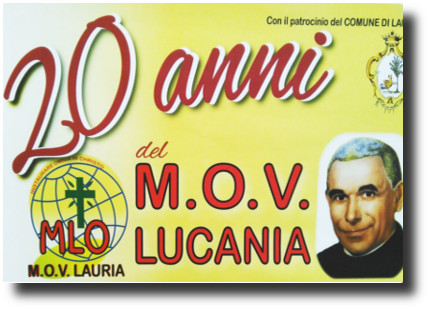 20 anni di MOV Lucania celebrati domenica 23 ottobre a Lauria (PZ). Il Movimento Laicale Orionino nasce nel centro valnocino nel 1996. “Il futuro ha un cuore antico” è il titolo dell’evento che i volontari orionini (MOV) hanno voluto dare alla manifestazione. Per evidenziare la costanza, l’impegno e la passione impiegati nel corso di questi anni e, con le stesse qualità, proiettarsi verso il futuro. Ad introdurre l’incontro un video di pochi minuti che ha riprodotto la sintesi di questi 20 anni. “Ampia umanità sociale e culturale. Sempre dalla parte degli umili, delle famiglie, dei poveri e dei bisognosi. Professando gli insegnamenti di uno dei personaggi più influenti del secolo scorso San Luigi Orione” afferma Giuseppe Petrocelli giornalista moderatore del convegno. Nel suo intervento il Primo Cittadino Angelo Lamboglia ha sottolineato che: “È molto importante stare dalla parte degli umili come abbiamo appena visto dalle slide. Il MOV nel corso di questi anni ha avuto il coraggio di mettersi in discussione. È un esempio da seguire. Ci offre la dimensione di un tragitto che non possiamo abbandonare ma continuare a percorrere ”.